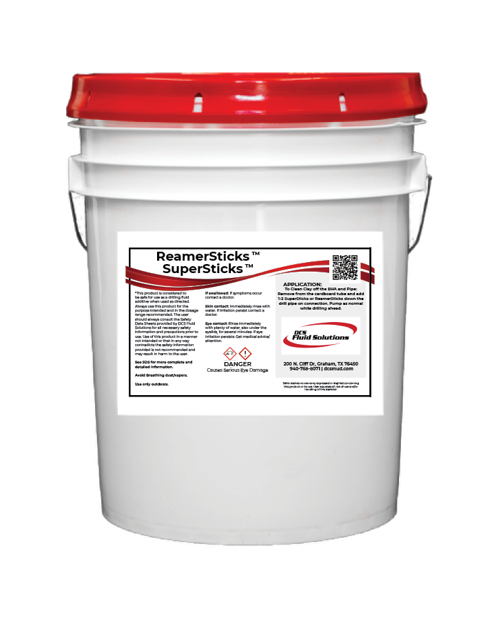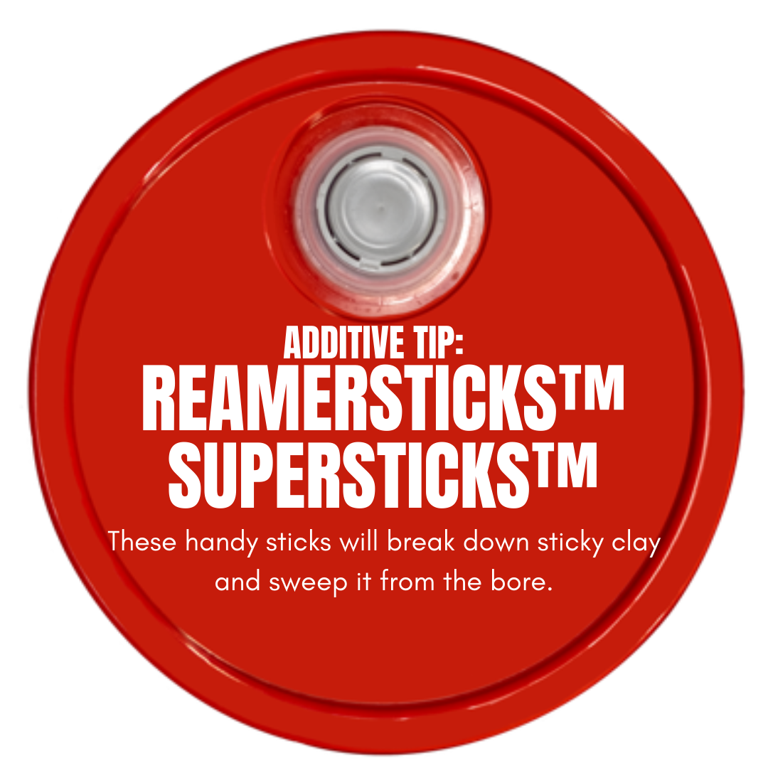 A combination of easy clay fighting solutions. Just remove the cardboard tube and throw ReamerSticks and SuperSticks down the drill pipe on connection to clear sticky clay of the bit and drill pipe. SuperSticks break up and coat the clay and ReamerSticks keep the clay from sticking back together and improve fluid lubrication to improve flow back to the surface pits.