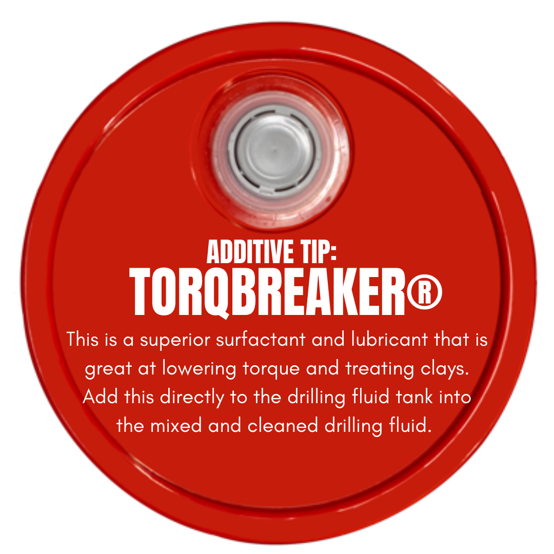 TorqBreaker is by far the best drilling surfactant on the market today. Cleans and coats cuttings and adds a great deal of lubrication to the fluid and drill steel. This lowers annular pressure and stabilizes the formation by reducing the chance of IRs. Use it while drilling and pulling pipe by adding slowly to the clean fluid directly into the pit.